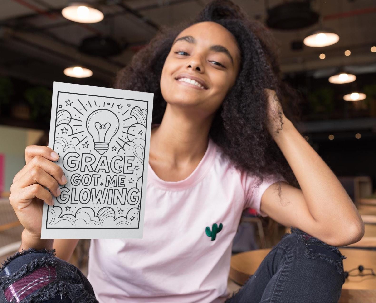 Grace Got Me Glowing - Christian Coloring Page (PDF Instant Download)